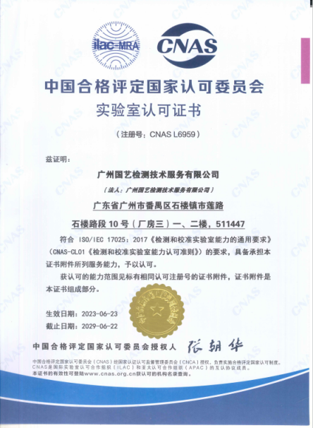 國(guó)藝檢測(cè)CNAS資質(zhì)